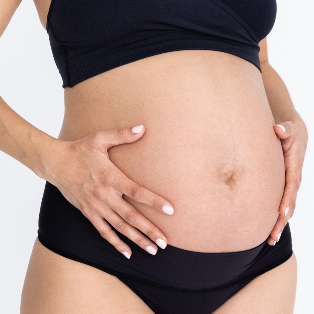 Calzón para embarazada, elaborado en microfibra y forro 100% algodón con doble cintura reforzada para mayor comodidad.