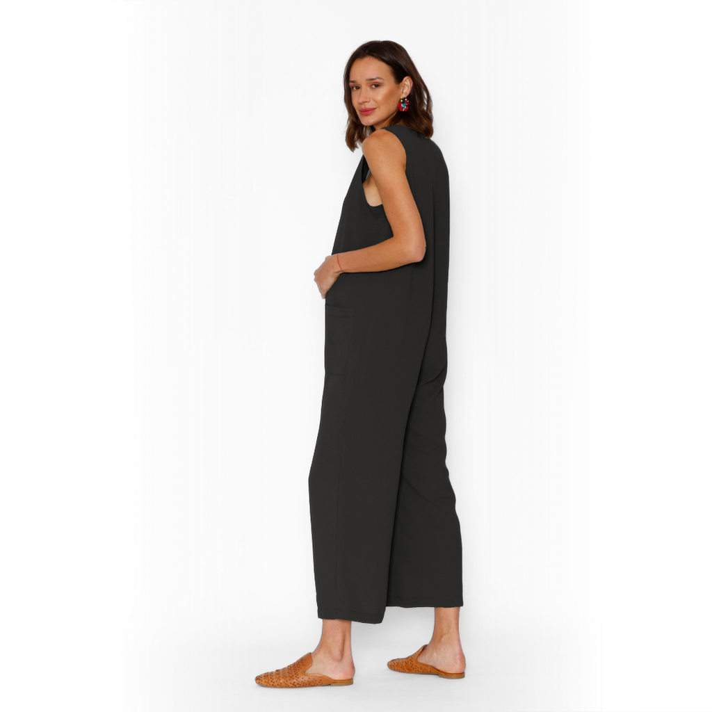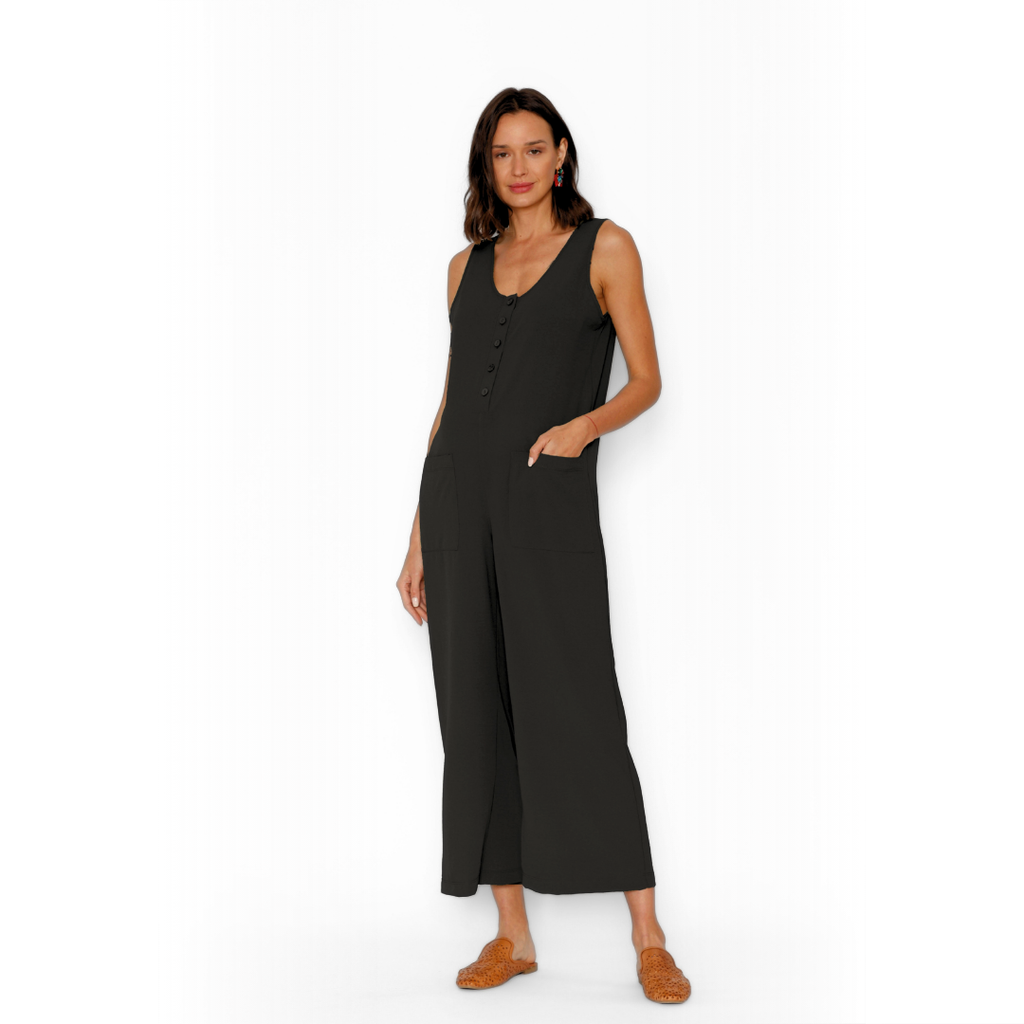 Enterito o jardinera larga modelo Amelia abotonado en color negro.