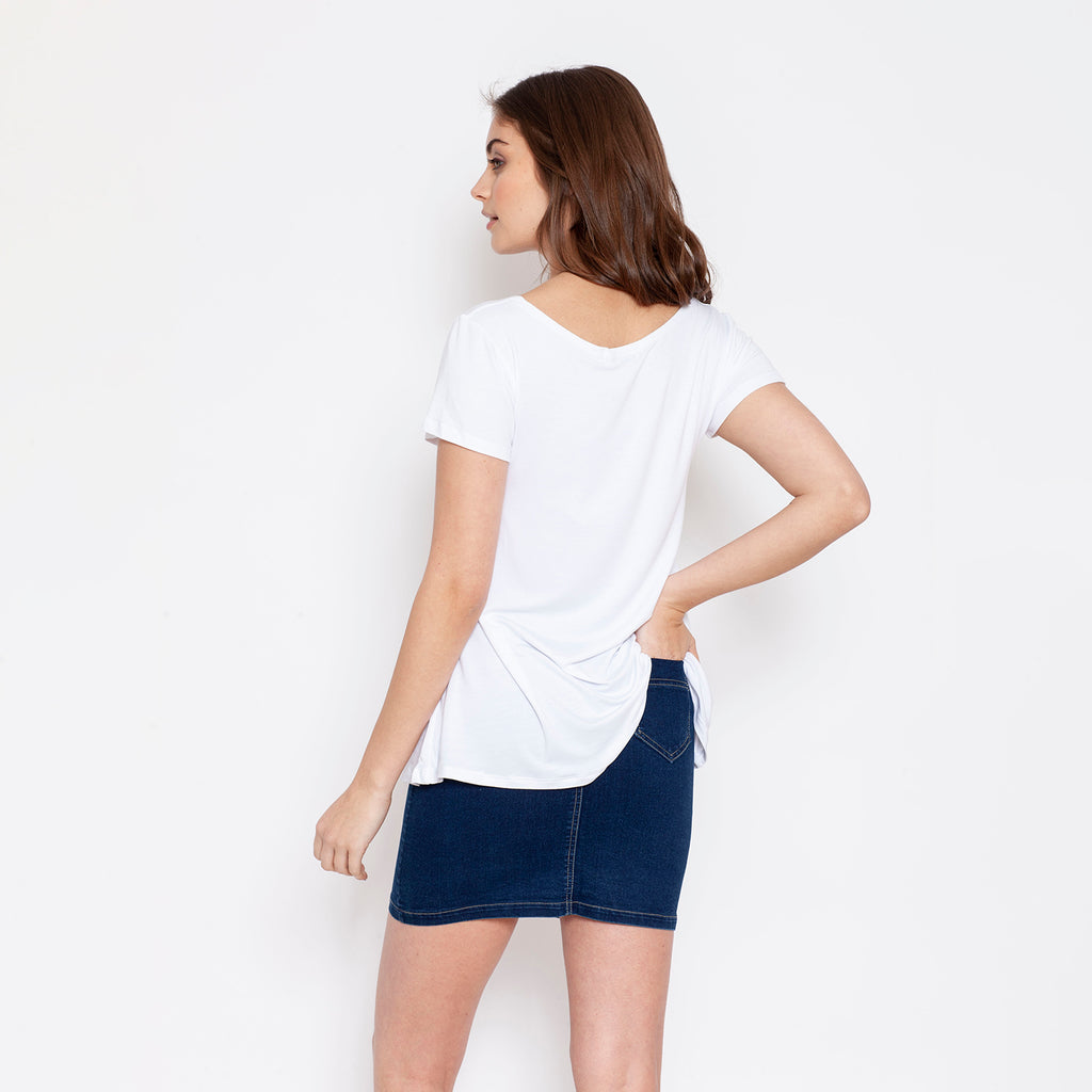 Mini de jeans maternal con pretina elasticada perfecta para el periodo de embarazo. Tamaño de la mini es menor a la talla indicada, por lo que se recomienda comprar una talla más.