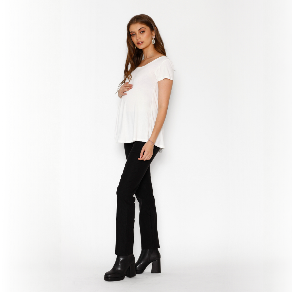Este elegante pantalón ha sido confeccionado pensando en la mujer moderna y activa, brindándote una opción versátil y práctica para el vestuario de trabajo durante el embarazo.