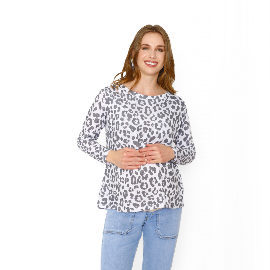 Confeccionado en manga larga y cuello simple, ofrece un calce cómodo y versátil, ideal para el uso diario. Su estampado Leopardo Blanco lo convierte en una prenda moderna y fácil de combinar con tus tenidas favoritas, aportando un toque elegante y funcional a tu clóset maternal.