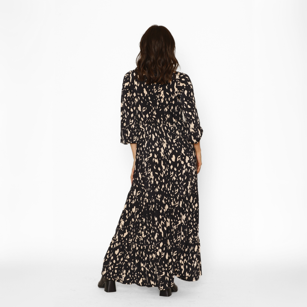 Vestido Lactancia Largo M/Globo Negro Brochas Beige
